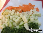 Морковь нарезать тоненькими полукружьями, яблоко – кубиками, укроп - мелко.