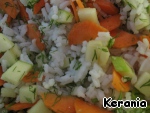 Смешать вареный рис, морковь, яблоко и укроп. Добавить соль и перец по вкусу.