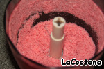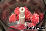 Замороженную клубнику положить в блендер. НЕ РАЗМОРАЖИВАТЬ!