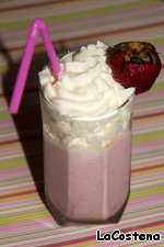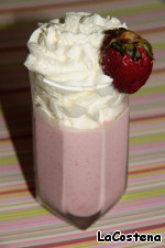 клубника, молоко, клубничный сироп, айс йогурт, взбитые сливки, лед.
