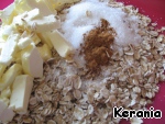 Смешать овсяные хлопья, сахар, корицу и нарезанное кубиками сливочное масло. (Кстати, если фрукты очень сладкие, то количество сахара можно уменьшить или не добавлять совсем).