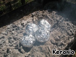 Положить фрукты в угли и запекать минут 15 (хотя здесь нужно ориентироваться на размер фруктов и жар углей).
