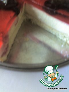 Творог растереть с размягченным маслом в однородную массу, влить желатин, и добавить сахар. Готовую начинку вылить на корж и поставить в холодильник. Застынет быстро, буквально за 10 минут.