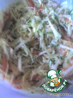 Капусту нашинковать и потереть с солью и сахаром, до появления сока. |