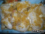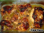 На следующий день: замаринованного цыпленка выкладываем на противень и ставим в духовку минут на 40-60. Дома начинает пахнуть праздником)))