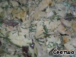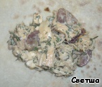 Все перемешиваем и получается вот такая красота. Эту начинку можно использовать как салат и уже ехать на пикник, но "продолжение следует..."