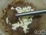 Туда же кладем размягченное сливочное масло и еще раз измельчаем блендером до консистенции пюре.