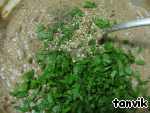 Следом пряности, рубленую петрушку, цедру лимона (у меня сухая) и муку.