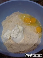 Добавляем сметану и яйца.