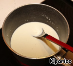 Вскипятить сливки, молоко, сахар (20 гр) и ваниль.