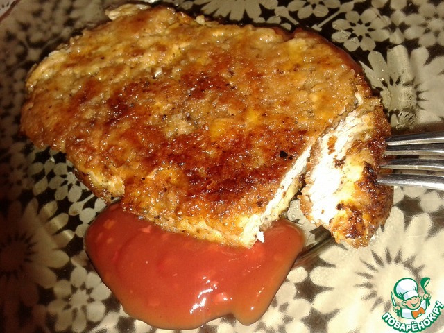 И следом в сыре с сухарями. Панировку нужно хорошо прижать к мясу