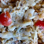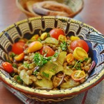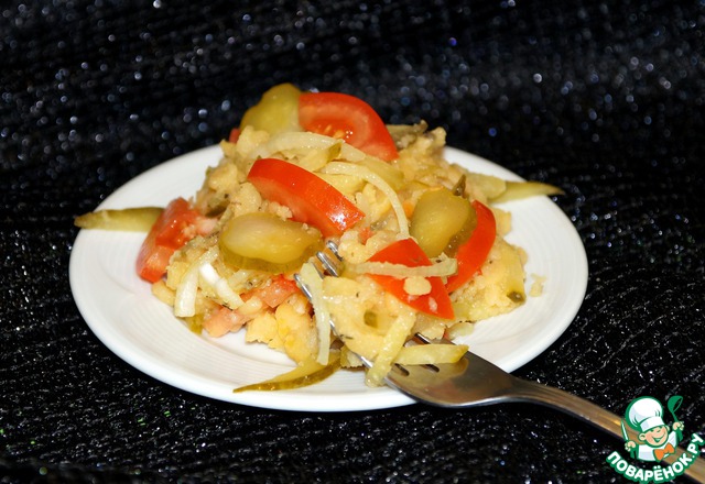Этот салат попробовала недавно в украинском ресторане, он мне очень понравился, и я воспроизводила его сегодня дома со своими небольшими изменениями. Салат очень вкусный, настоятельно рекомендую попробовать!:-)