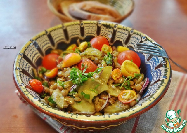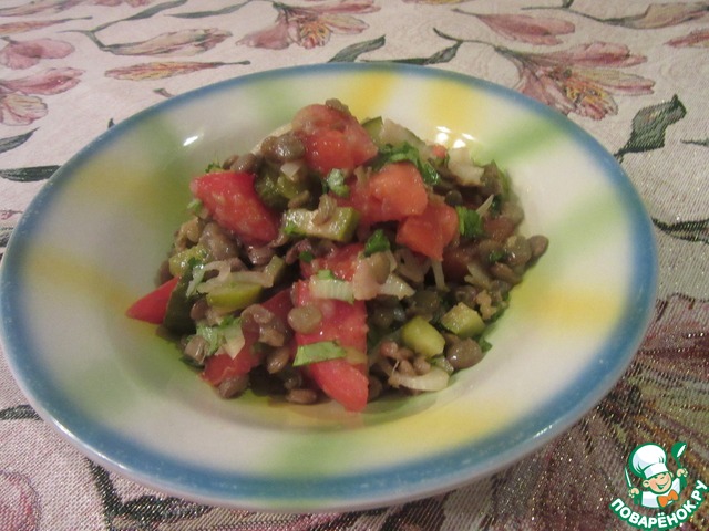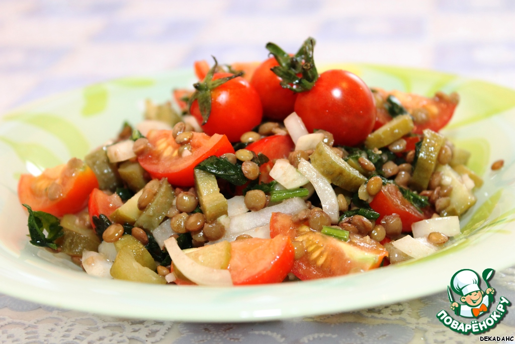 Рецепт «Салат из чечевицы с соленым огурцом»: