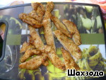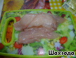 Обжаренное филе аккуратно нарезать на тонкие ломтики.