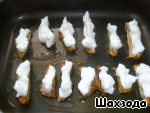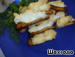 Белок взбить с лимонной кислотой до увеличения объема в 3 раза. Филе выложить на смазанную растительным маслом форму, аккуратно сверху нанести белок. Поставить на 5 мин. в разогретую духовку, чтобы белок приобрел золотистый цвет.