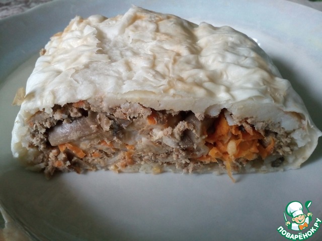 Этот рецептик делал мой папа, когда постился. Только он делал его с гороховым пюре. А я в свою очередь решила добавить мяска и немножко переделать по-своему вкусу.