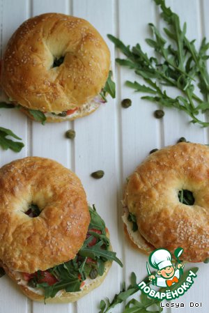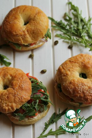 Бейглы с копченой семгой это - американская классика. Но приготовить их можно с любой другой начинкой, курицей, мясом, даже овощами. Повозиться с их приготовлением, конечно, придется, так как тесто проходит двойную тепловую обработку, сначала его отваривают, а потом выпекают. Но, поверьте, оно того стоит. Сам процесс приготовления очень интересный, да и результат очень вкусный. ))) Бейглы, как ничто другое, подойдут для пикника. Их очень удобно брать с собой на природу, в поездку или для перекуса на работе.