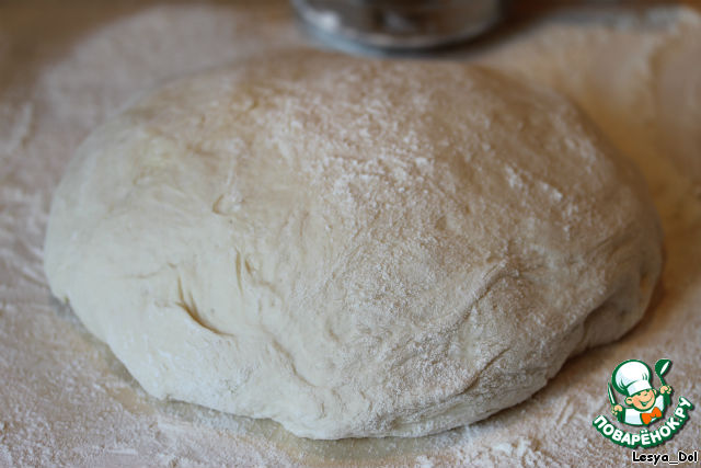 Сначала приготовим тесто. Смешать сухие ингредиенты, добавить теплое молоко или воду, смешанное с растопленным сливочным маслом. Замесить тесто средней плотности, переложить его в глубокую миску, накрыть пищевой пленкой и поставить подходить в теплое место на 1-1,5 часов.