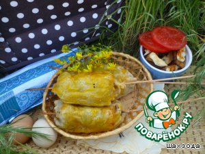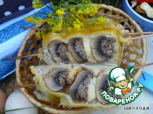 Рецепт «Шампиньоны с фаршем и сыром в тесте»: