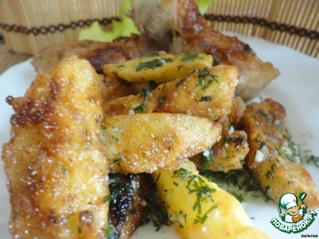 Картофель выходит с хрустящей корочкой и чесночным ароматом.