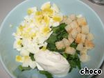 Добавляем сухарики, сметану, нарезанное яйцо.
