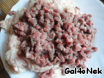 Если у Вас нет замороженных ранее шкурок, как я и писала в описании, "изготовьте" их из ножек, а из мяса приготовьте фарш. А еще лучше мясо не молоть в мясорубке, а порезать маленькими кубиками. Но я купила куриный фарш.