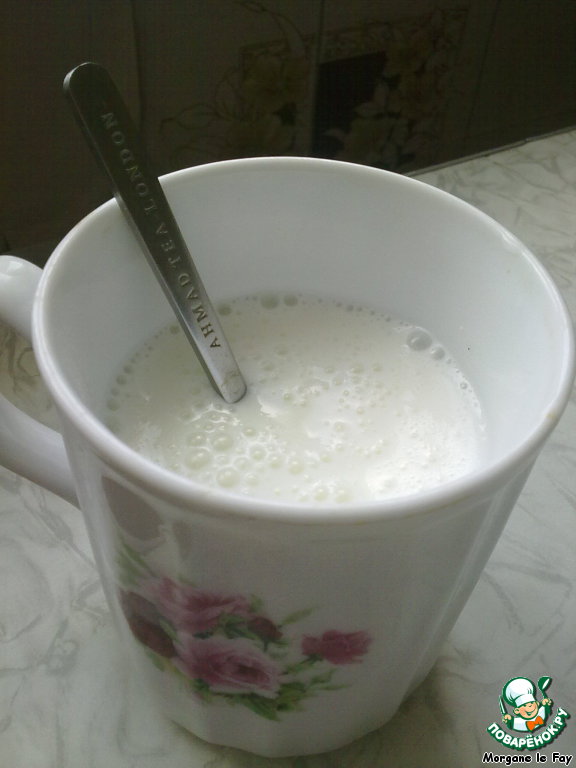 • На заметочку. Отмеряйте необходимое количество кефира и перелейте его в чашку побольше стакана. Благодаря небывалой магии кефир поднимается. Это моя любимая часть в приготовлении этих маффинов. Вот так залила, а через пару минут на треть больше стало... Ну разве не классно? :) Я прям зельеваренье в Хогвартсе преподавать могу, жаль, не берут... :D