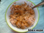 Начинка №3. Разделить фарш на 2 части. Первую часть смешать с кабачком и специями для фарша