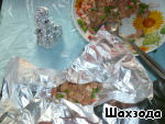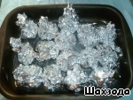 На кусочки фольги выложить по 2 ст. л. начинки. Завернуть как конфету "Трюфель".