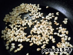 Пока варится рис, займемся остальными ингредиентами. Кедровые орешки обжарим на сухой сковороде пару минут.