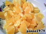 Остальные два апельсина почистить, разделить на дольки и порезать небольшими кусочками.