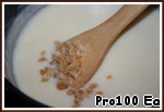 1 стакан молокa влить в яйца тоненькой струйкой и венчиком перемешать.