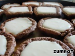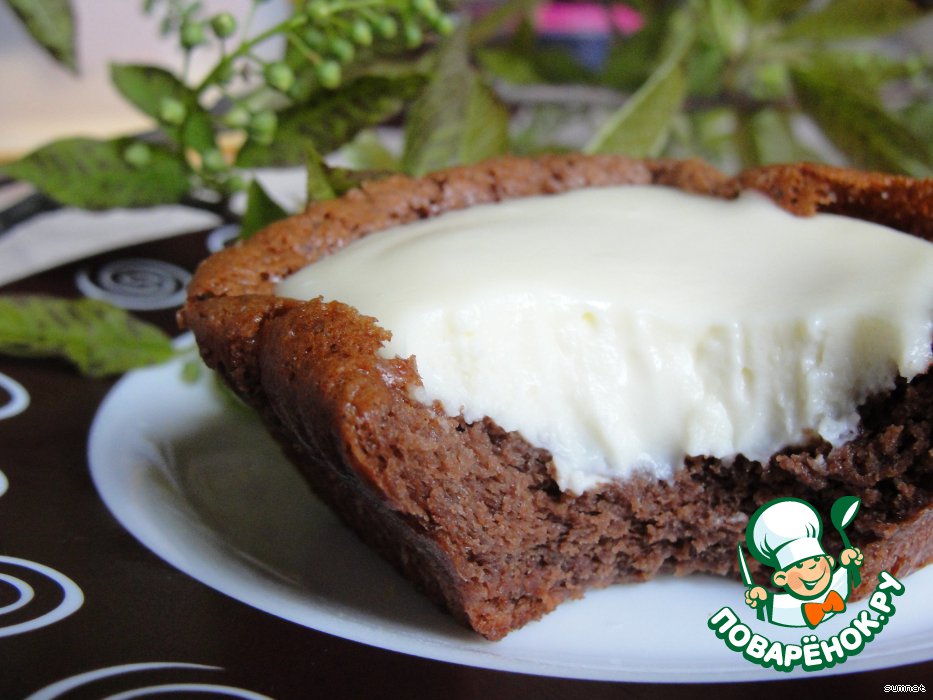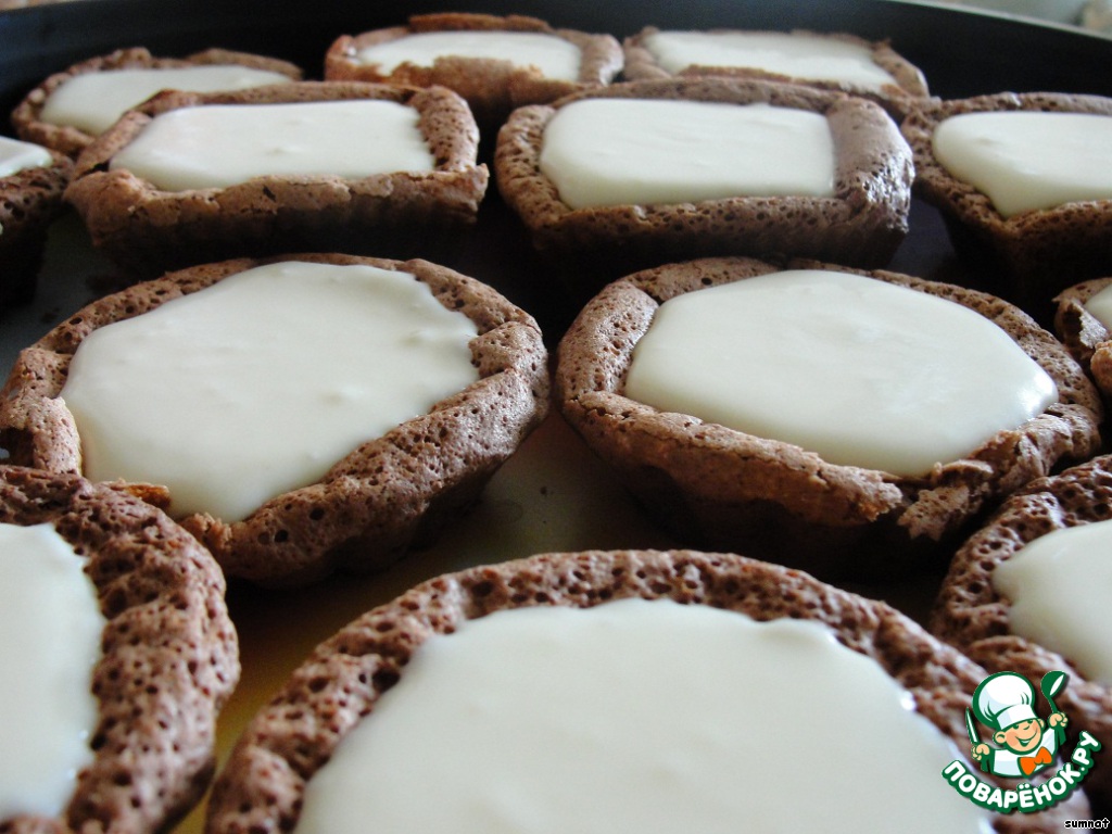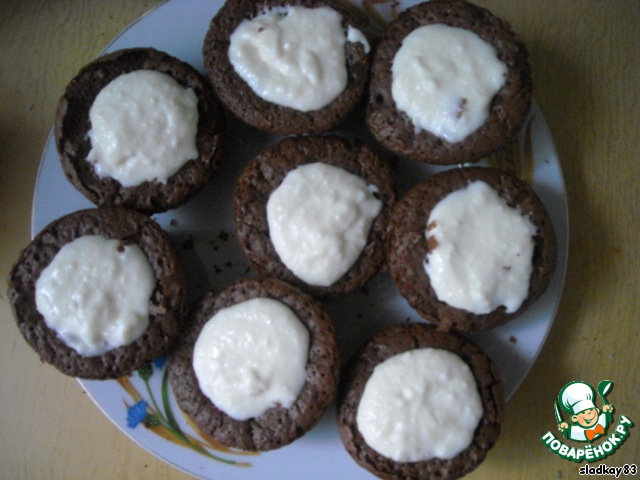Смотрим еще через 5 минут – тесто опало до первоначального уровня. Еще через 3-5 минут достаем формочки, и пирожные опадают «в минус» - буквально проваливаются в серединке. Это как раз то, что нам нужно.