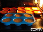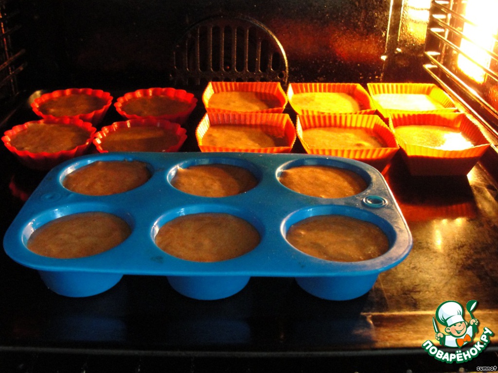 Получившееся тесто раскладываем по силиконовым формочкам (заполняем примерно на 3/4) и ставим в разогретую до 180 градусов духовку на 18-20 минут.