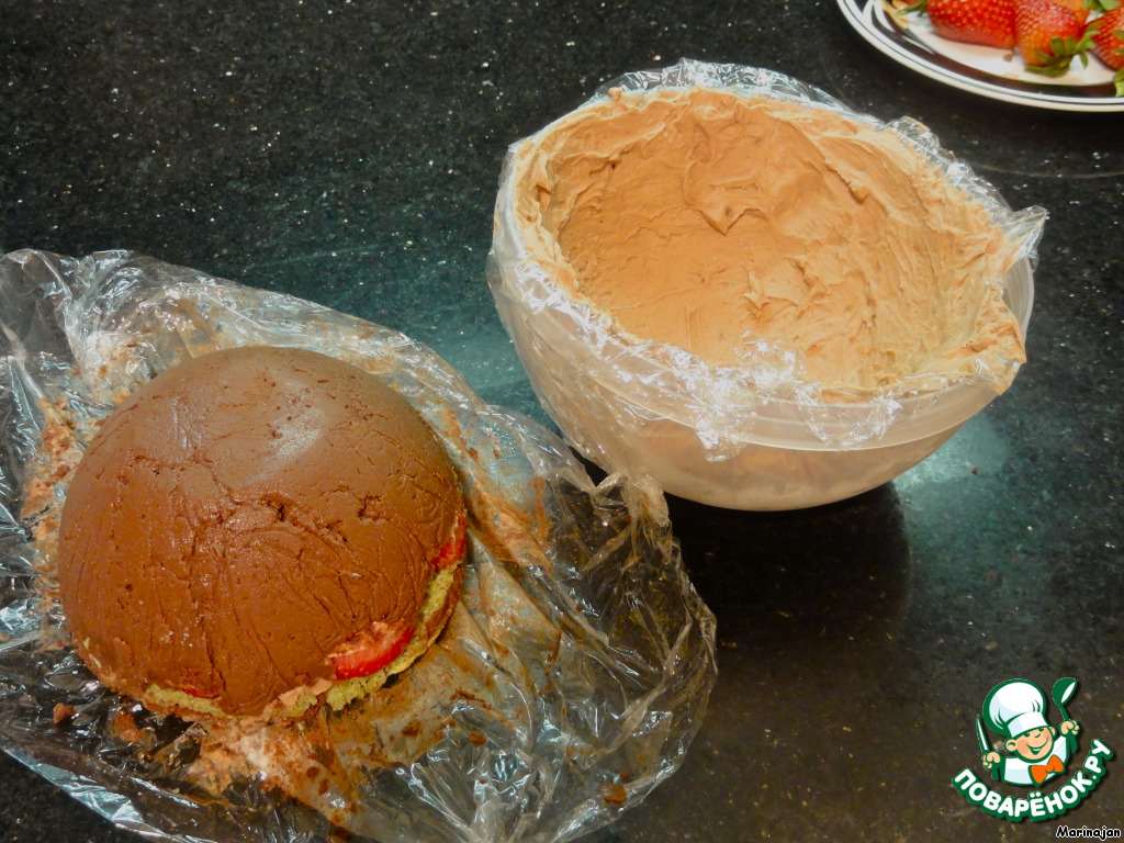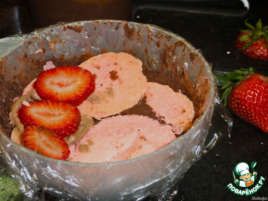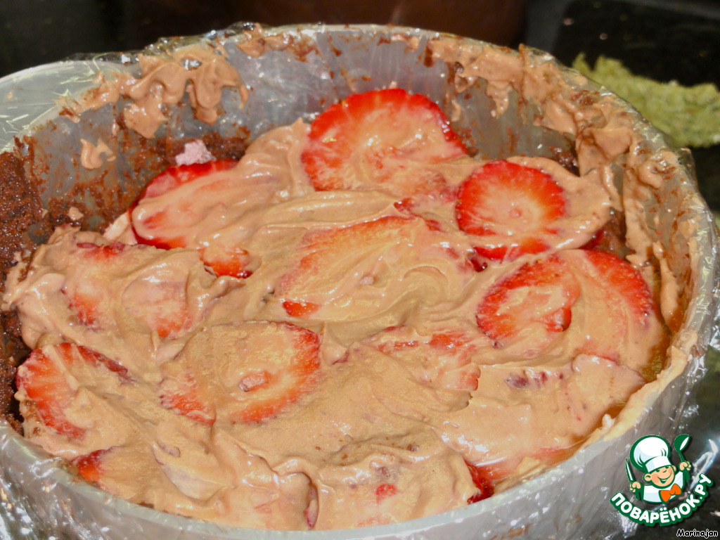 Следующим слоем идет клубника (ее в описании рецепта нет, можете не класть), но она придала свой аромат. -