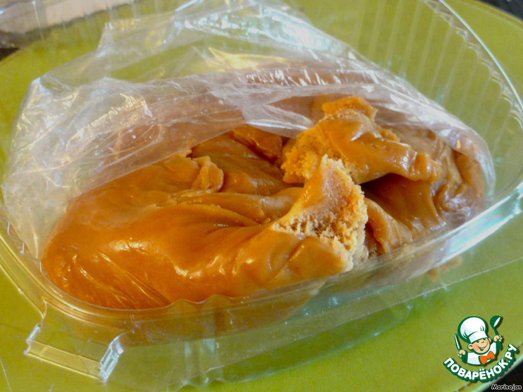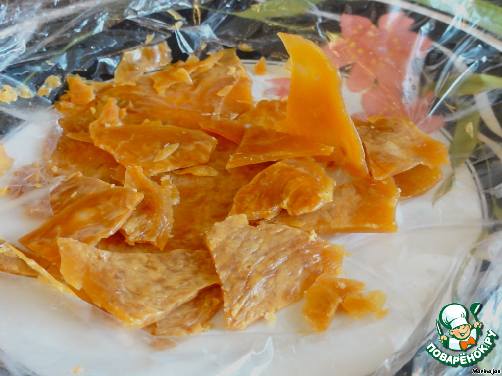 После морозилки карамель становится, как стеклышко, и рассыпается на осколки.