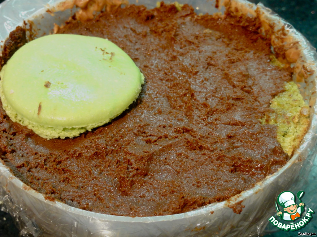 И, наконец, последний слой - бисквит (у меня остатки бисквита).