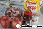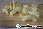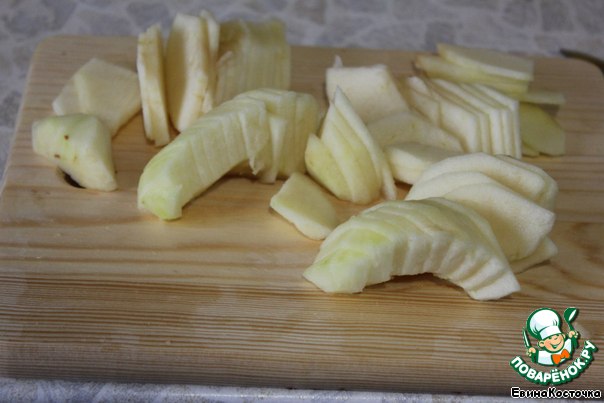 • Яблоки очистить и нарезать дольками. Обжарить в масле.