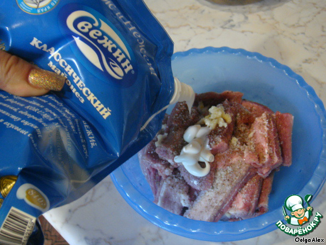 Тщательно перемешиваем и оставляем на один час, чтобы ребрышки замариновались.