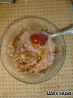Куриное филе пропустить через мясорубку, добавить соевый соус kikkoman, арахис, кетчуп