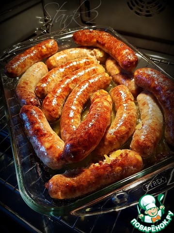 Периодически нужно открывать духовку и протыкать колбаски цыганской иголкой, ну или еще чем острым, но тонким. Этот нюанс обязателен, иначе колбаски просто лопнут, тем самым испортив весь свой эстетический вид. -