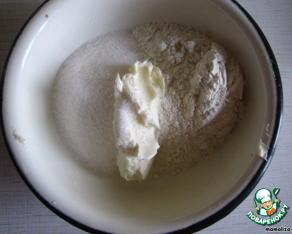 Для теста №2 смешать масло комнатной температуры с мукой и сахаром. Вымесить.