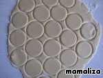 Раскатать тесто в тонкую лепешку и вырезать кружки по размеру заварных лепешек.