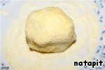 Распластать каждый шарик в лепёшку и поместить в центр клубничку.