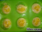 В смазанные формочки выложить 1 ст.л. теста, положить измельченную карамель, затем налить еще 1 ст.л теста. Выпекать в духовке при 180 гр. до готовности.