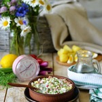 Такая окрошка особенно вкусна в конце весны и в начале лета, когда много молодой и свежей зелени, особенно когда есть зеленый чеснок. Чеснок, горчица и огромное количество зелени дают ну просто потрясающий аромат!