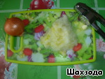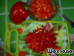 Помидор, сладкий и острый перец мелко нарезать (я стручок острого перца заменила щепоткой молотого перца)