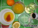 Приготовить вино, паприку, растительное масло, соевый соус, выжать апельсиновый и лимонный сок
