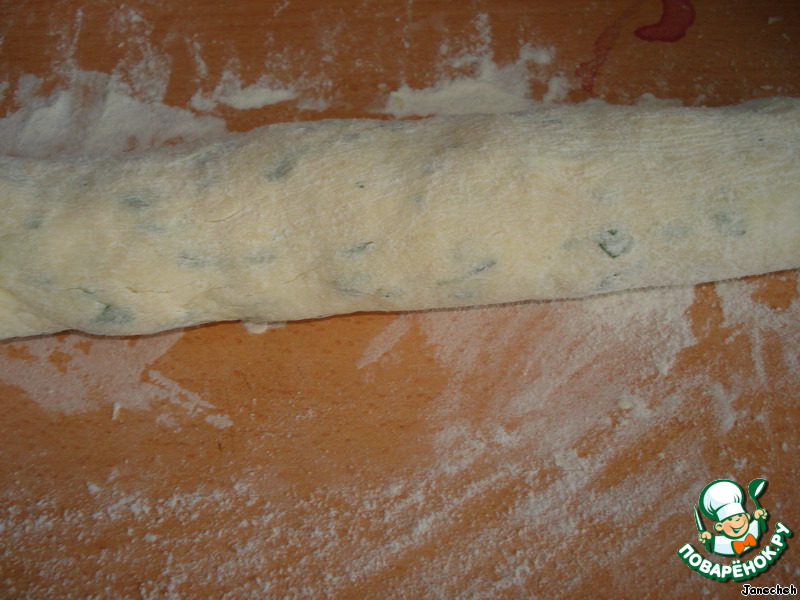 Из теста скатаем длинную колбасу, толщиной 2-3 см.