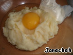 В картофельное пюре добавим сметану, яйцо размешаем. -